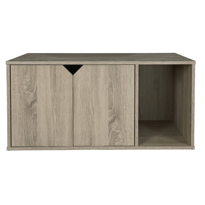 Tired of seeing your cat’s litter box? Hide it with a litter box enclosure. A fun piece of furniture that not only hides the litter box but also makes it fun for the cat to use in private. It features two doors that conceal the litter box but provides easy access to the box when it is time to clean. An open area on the right for your cat to come and go as they please. Add function to your space by using this as a coffee table as well. right for your cat to come and go as they please. Add function to your space by using this as a coffee table as well.