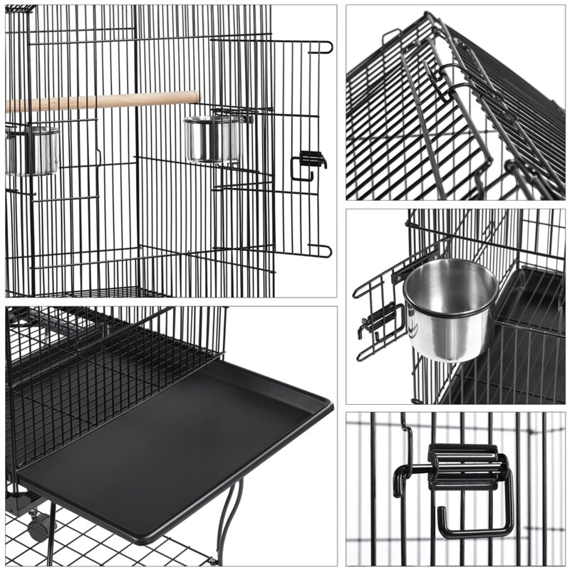 Convenient Open Top Design: To keep your bird stimulated and provide both you and your feathery friends with a better interaction way, the gable roof of this rolling bird cage can be opened and locked up at will. It includes a perch that keeps the top doors open for the birds to stand on, and can be closed to give them a safe enclosed home.