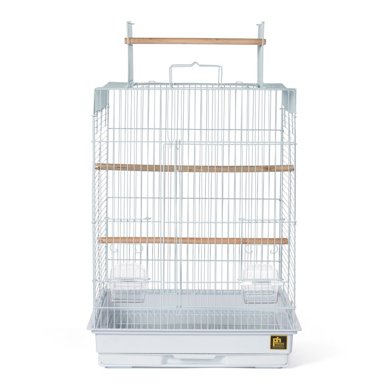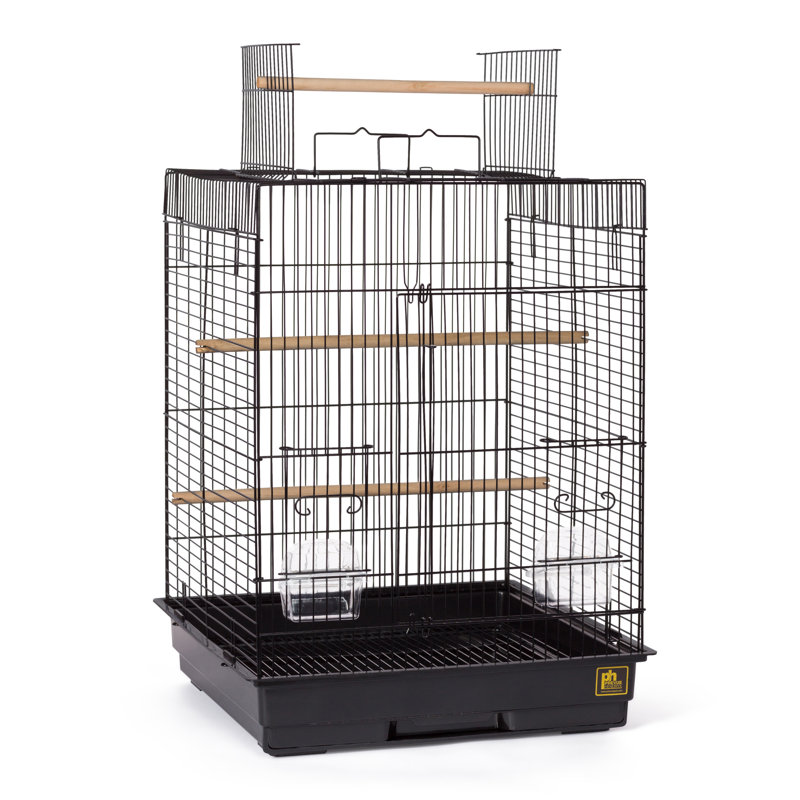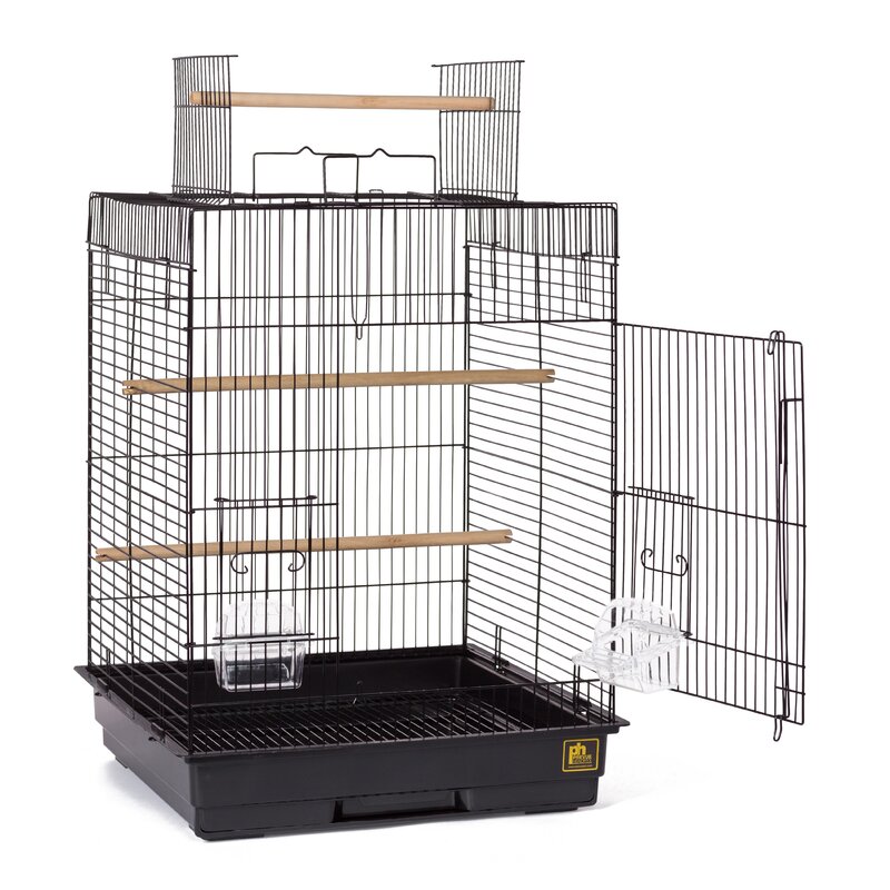Tucker Murphy Petâ„¢ Pet Products Cockatiel Playtop bird cage in Black 68676B91CA744DD7B7DF20E579467D4D features a roof that opens to a play top with perch and a large front access door plush two food cup access doors. A removable bottom grille and pull-out tray make cleaning easy. This Cockatiel Playtop cage includes two plastic cups with three wood perches and is designed for parakeets, budgies, lovebirds, cockatiels, and other small to medium-sized birds.