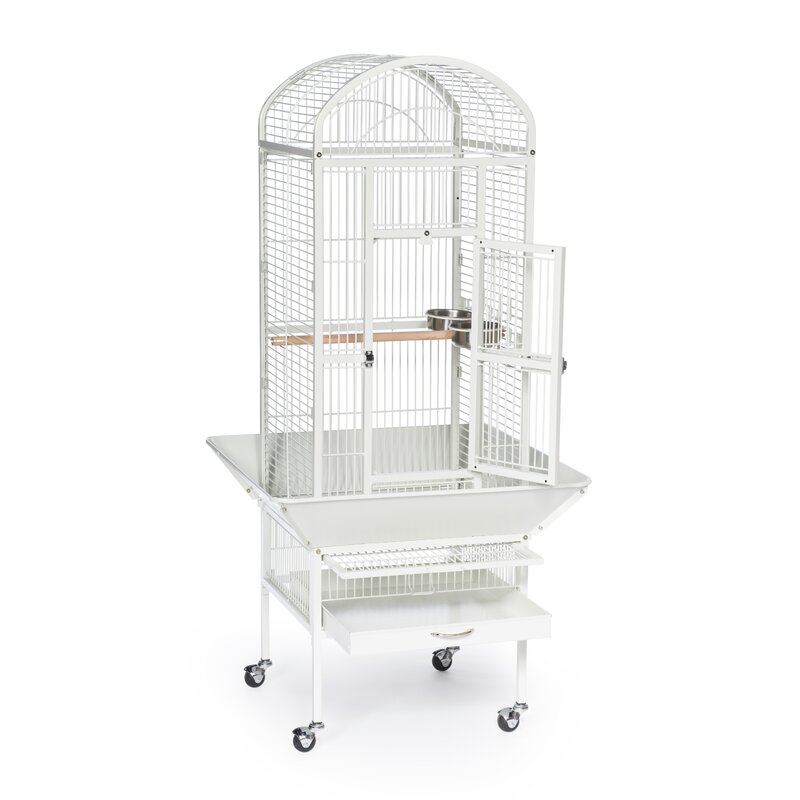 2 Stainless steel 12 oz. cups, a wood perch, and a rounded corner seed guard set included