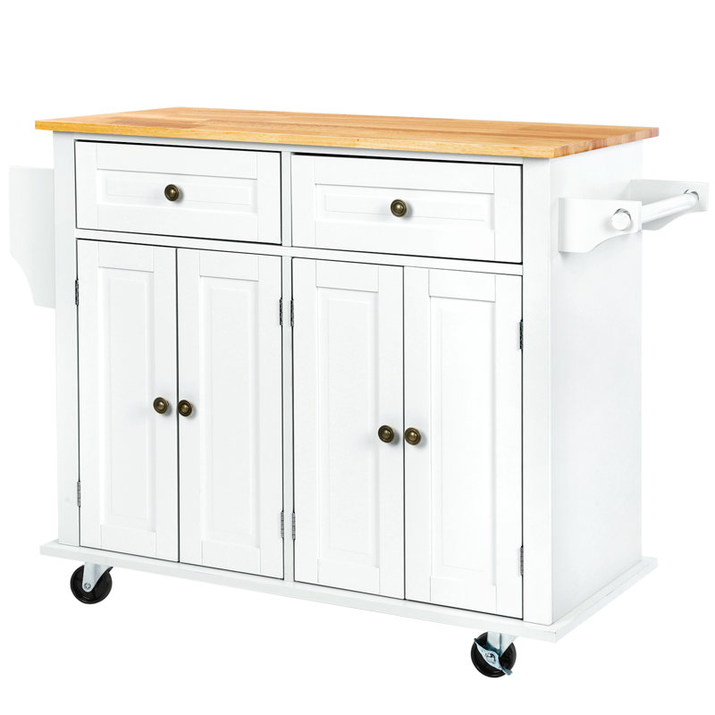 Spacious Storage Space: With a large solid wood top, two spacious cabinets and two easy-glide drawers, a spice rack, and a removable towel rack. The drawers are perfect for storing napkins, cutlery, and more.