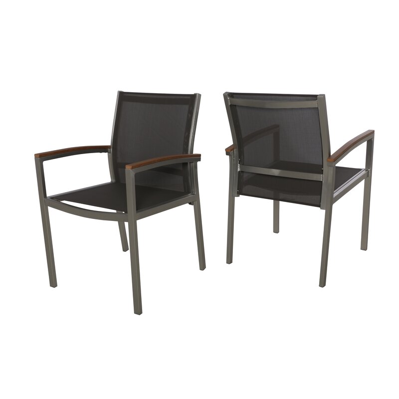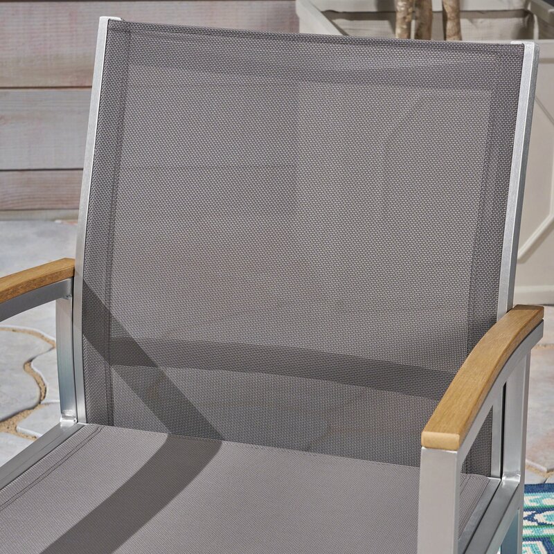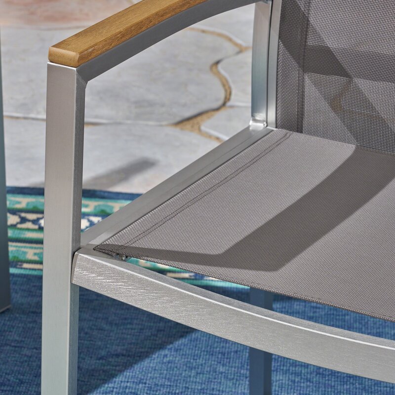 When dining in the fresh air and sunshine, you and your loved ones deserve the best. These patio dining chairs offer your guests comfortable outdoor mesh seats and a contemporary look compatible with dining tables of all varieties. Faux-wood arms on otherwise completely aluminium frames imbibe these selections with a distinctly mid-century modern vibe, giving them a retro look that will never go out of style.