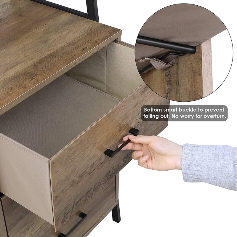 Featured 3-tier open shelves and 3 fabric drawers, this ladder bookshelf with drawers can maximize the vertical storage space, which is perfect for displaying your books, kid’s toys, plants, or family photos. The 3 large fabric drawers provide a private room to store your pants, clothes, underwear, or other small appliances. The stylish, simple lining design adds a sense of refinement to any space, making it a perfect complement to a variety of retro-style decorations. It is the perfect decoration for the living room, bedroom, office, kitchen, or entryway.