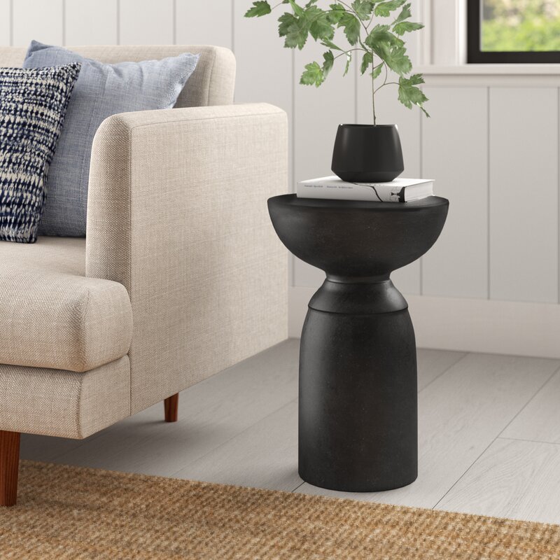 Give your living room, bedroom, porch, or patio an instant upgrade with this distinctive modern end table. We love that this versatile piece can be used indoors or outdoors, and also works as a nightstand or even as alternative seating (it accommodates up to 200 lbs.).Crafted from sealed concrete, this 17†diameter table features a streamlined, asymmetrical pedestal silhouette, offering a sculptural feel. Plus, it arrives fully assembled, so you can start using it right away in your mid-century modern, minimalist, or bohemian home.