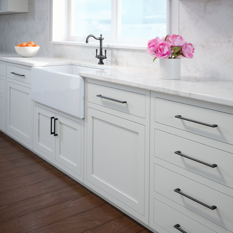 The Vail collection is high quality with the perfect matte black finish. These pulls are such a clean shape, perfect for my modern farmhouse with a romantic twist. They could work in a variety of designs! I paired them with the 10” pull for the large drawers and the Vail knobs for upper and lower cabinets.