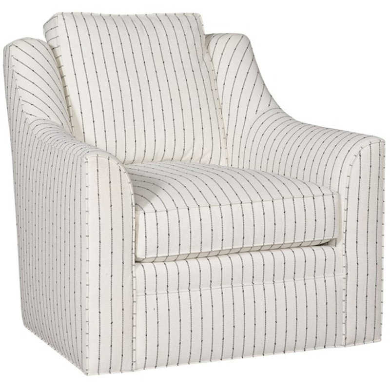 The chair is part of the American Bungalow collection. This collection brings out your inner interior designer to create custom upholstery that reflects your unique personal sense of style and comfort. This chair features 8-way hand-tied construction, a maple frame, and a 360-degree swivel base.