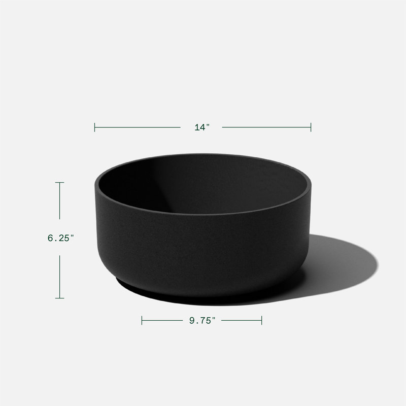 This is the bowl planter I needed! Not too wide, not too shallow, minimalist enough! It is sturdy and solid black–was worried about that–and looks like ceramic from a distance, a little bit less to the touch, but solid enough to not feel not one bit flimsy. The molding joints aren’t obvious and it has plenty of drainage holes. VERY happy with this purchase and would get more if I had space for them.