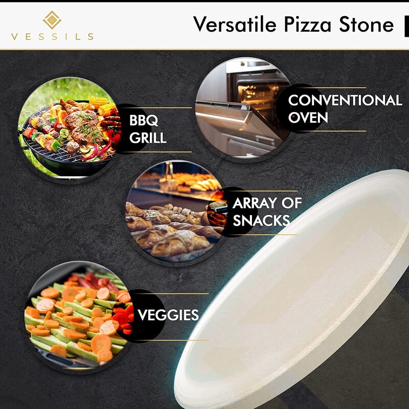 VERSATILE PIZZA STONE is a must-have addition to your pizza oven accessories and kitchen gadgets. Use it in your conventional oven or BBQ grill for an array of snacks, veggies and delicious foods.