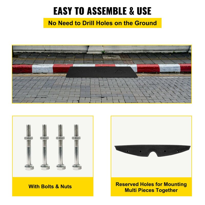 Effortless installation: The rubber ramps come with bolts and nuts for your easy connection. Each piece has reserved holes on both sides for mounting multi-pieces together. It is designed to stay put, so there is no need to drill holes in the ground, ensuring an effortless installation.