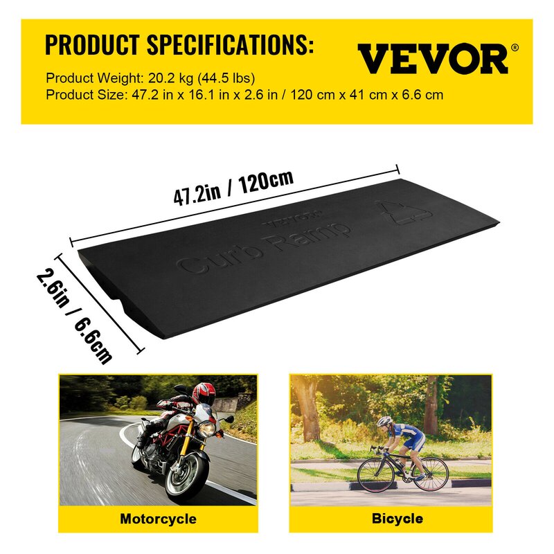 Durable rubber material: Our curb ramp for sidewalks is made of premium recycled rubber material, wear-proof, and weather-proof for long-lasting usage under various outdoor conditions. It is designed to help your vehicles get over curbs or elevated sidewalks easily.