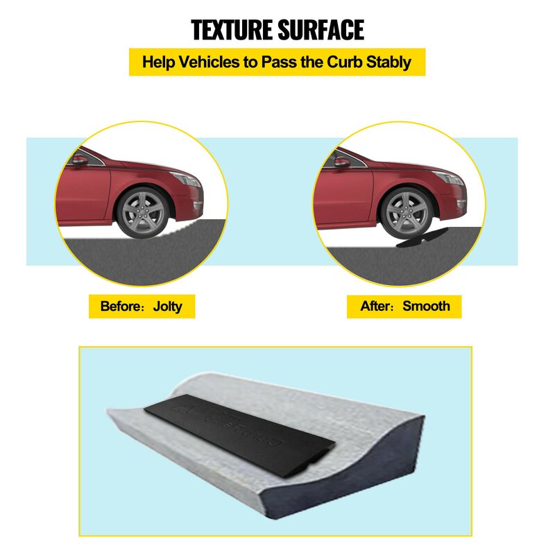 User-friendly details: With a channel underneath, the ramp allows the water to flow and protects cables. The textured surface avoids slipping to let your car pass smoothly and stably. Besides, the tapered end is easy for delivery vehicles to drive across your ramps without damaging them.