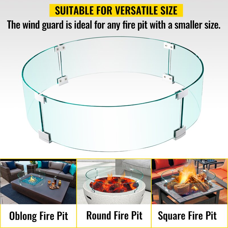 Firepit flame guard effectively reduces wind compact on fire table and excellent fit in your patio or garden. It shelters the flame while providing a barrier for users along with polished edges. Easy set and use with necessary accessories. Long-lasting durability assured with tempered glass and aluminum alloy corner brackets.