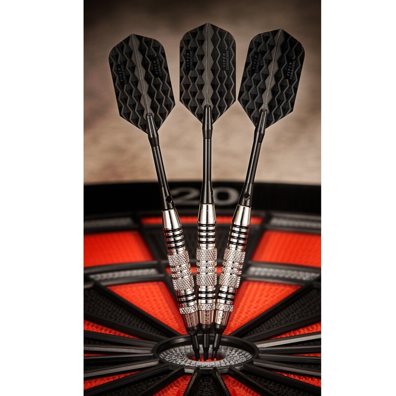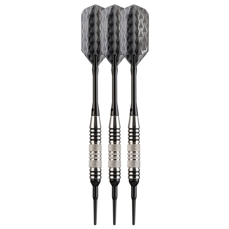 Great for beginners and experts alike. Never miss a bullseye with these high-quality adjustable soft tip darts. Improve balance and control with a dependable grip thanks to the knurled hand-painted barrels and aluminum shaft that features locking holes for increased stability. High-speed slim flights feature an aerodynamic design that reduces drag and offers a higher throw velocity, allowing your darts to stick more consistently and reduce bounce-outs. The aluminum shafts feature locking holes that fasten shafts to barrels for improved stability. Protect your darts and accessories in the compact travel/storage case. The hard outer shell secures your darts and clasps to prevent movement and breakage