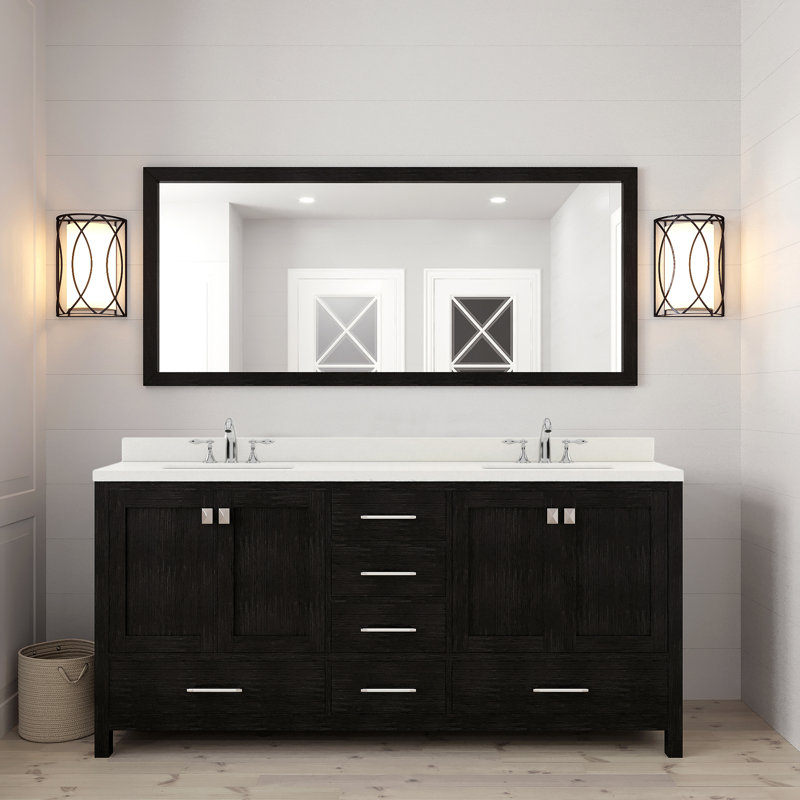 Includes – 72″ zebra gray cabinet, dazzle white quartz countertop, 2 square undermount sinks