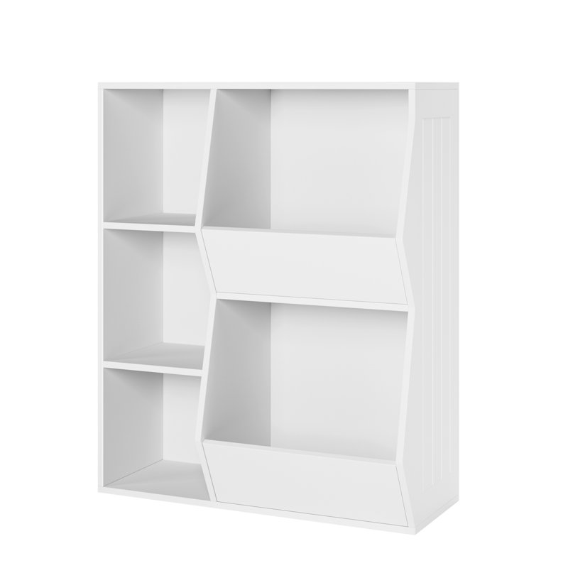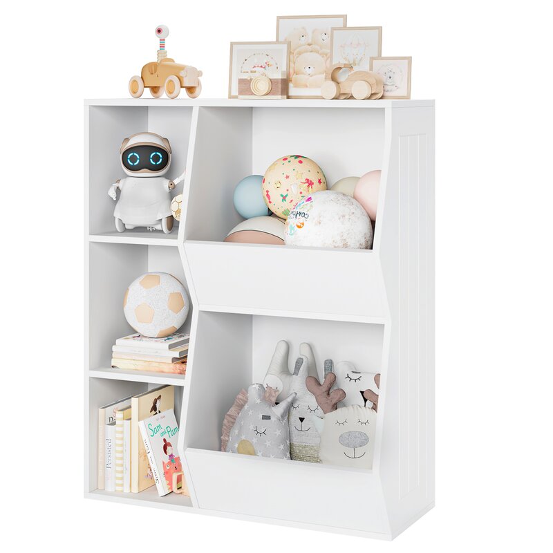 This bookcase is specifically designed for your kid’s bedroom or play area to help keep their space organized and clutter-free. Made from engineered wood, it comes in a crisp white finish that blends in nicely with a variety of styles and color palettes. Three shelves on the left and two larger compartments on the right provide a spot to rest books, toys, and stuffed animals. It measures 36.6″ tall and just over 30″ wide, so it’s the ideal size for your little one. A wall anchor is included for extra safety and stability.