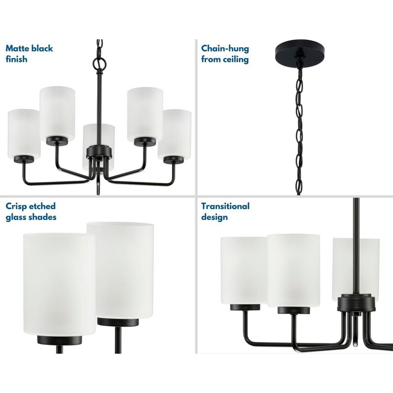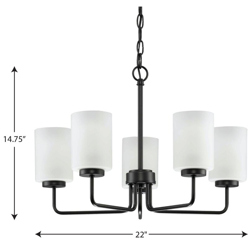 Incorporate a clean, contemporary design with the product. Light sources glow from within crisp etched glass shades for a generous elegant glow sure to transform your favorite living space into a modern retreat. The clean-lined tubular frame is coated in a beautiful brushed nickel finish that perfectly blends transitional and modern character. For ideal illumination, use 5 medium base bulbs that are sold separately (100w max – LED/CFL/incandescent). The chandelier is compatible with dimmable bulbs. The chandelier’s contemporary design is ideal for any foyer, dining room, kitchen, bedroom, or living room in modern and transitional style settings.