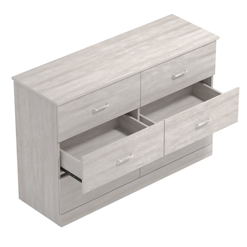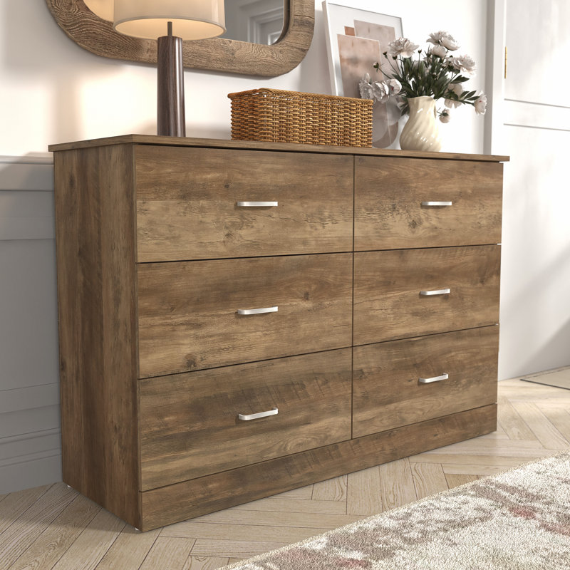This Alannah 6 Drawer 47.2” W Dresser delivers sleek materials and a clean-lined look. Ultra-fast assembly method eases your assembly time. It’s built from engineered wood with a neutral finish, and it features a streamlined rectangular design. The six drawers provide a place for everything from sweaters to denim, and its top surface easily holds a mirror and some decor items. Plastic drawer pulls and a low-profile plinth base round out the modern look. Plus, a wall anchor is included for added safety.