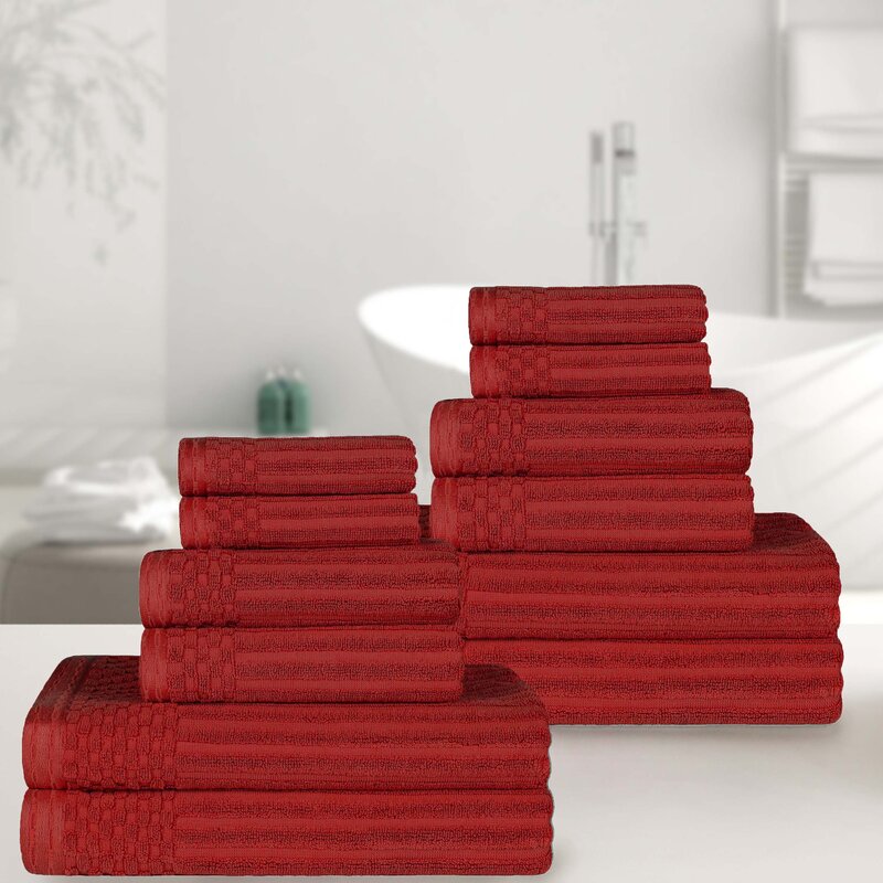 Create a welcoming, spa-like space in your bathroom with the Cotton Highly Absorbent 12-Piece Solid and Checkered Border Towel Set. This luxurious towel set will tie together any bathroom decor style including; Modern, Casual, or Traditional. The solid and ribbed pattern will seamlessly elevate the mood of your space. The premium Cotton construction makes this towel naturally strong and soft, with an ultra-absorbent design. Each towel is thick, ultra-plush, and highly absorbent to help you dry quickly after a shower or bath. These bathing essentials are available in a variety of vibrant solid colors to match your unique bathroom decor.
