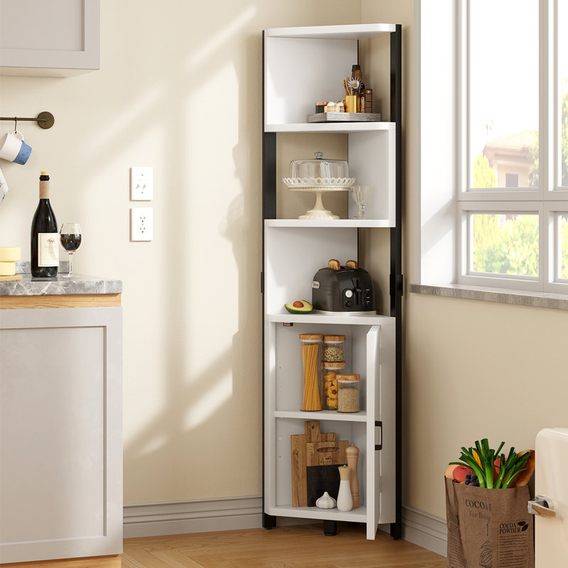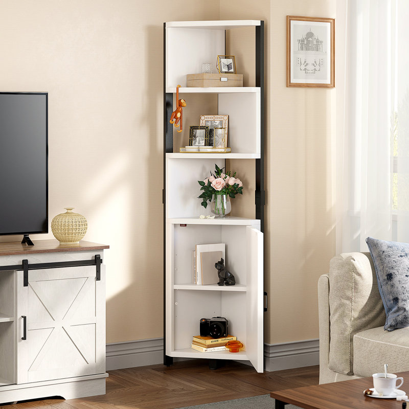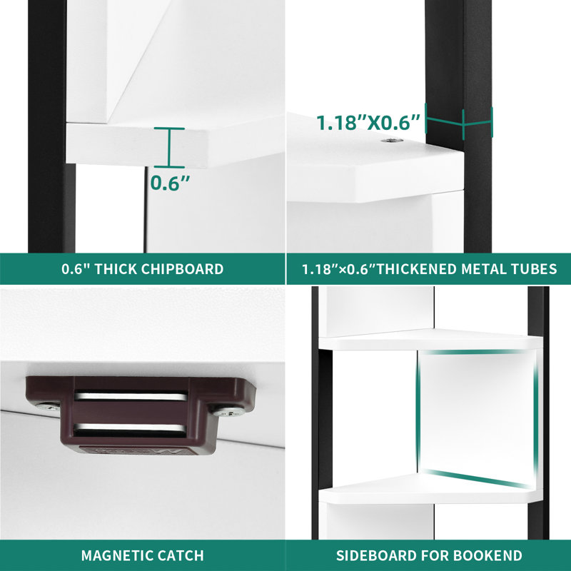 This corner bookshelf with a cabinet can utilize your corners as a useful storage area. The extra 2-tier storage cabinet with a magnetic catch allows you to hide your personal items or collections. And the 3-tier open shelves can display your books, plants, and CDs. It can store odds and ends to keep your room tidy.
