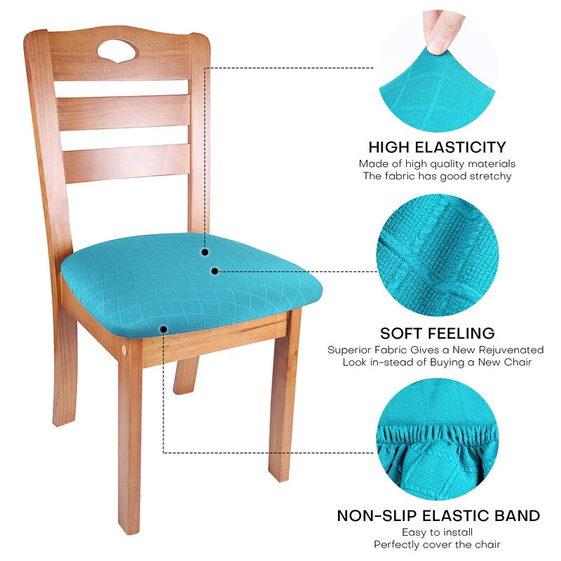 This chair cover has a unique diamond-checked jacquard fabric design. It is made of 92% polyester and 8% spandex with good elasticity, non-toxic and soft touch. You will love this good and inexpensive product. Suitable for dining chairs, garden chairs, office chairs, bar chairs, desk swivel chairs, and so on.