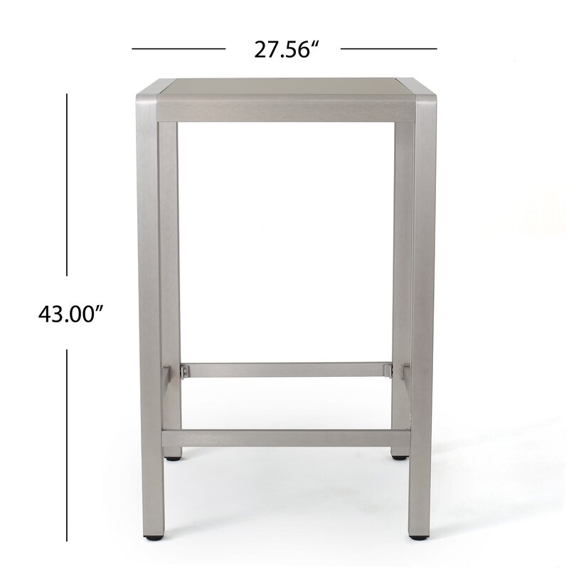 Entertainment ensemble feeling a little lackluster lately? Spruce up your space with this eye-catching bar table! Defined by clean lines on its aluminum frame, this piece is right at home in any contemporary setting. A tempered glass tabletop gives it a sleek shine, while a rust-resistant construction makes it great for indoor or outdoor use. Plus, its gray tone allows it to blend with any already existing color schemes in your space.