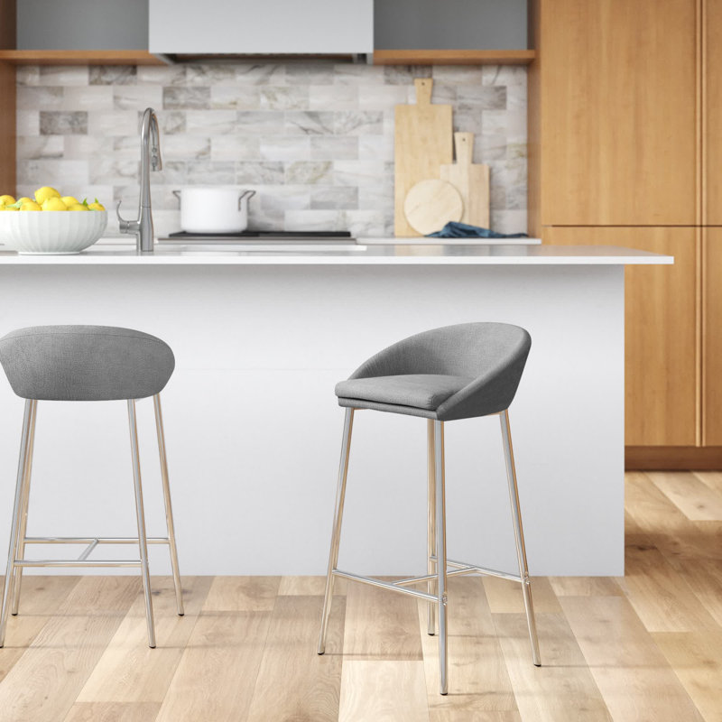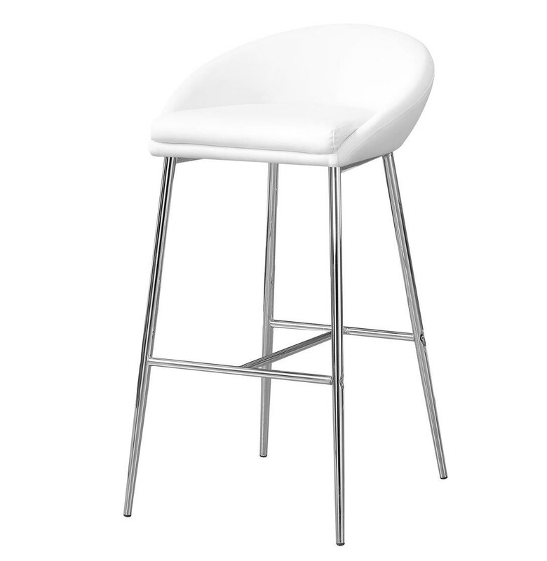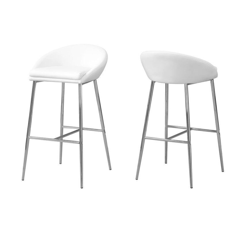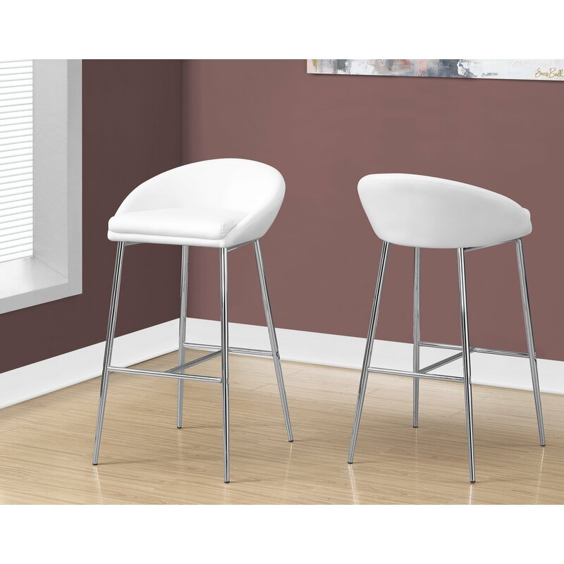 Glaser Bar Stool, Counter Height, Kitchen, Metal, Pu Leather Look, Chrome, Contemporary (Set of 2)
