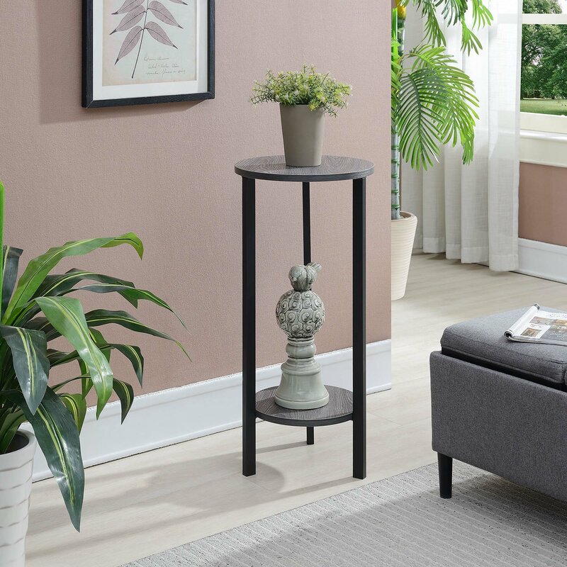 Whether you want a place to display a beautiful bouquet of roses, or somewhere to set out a pair of trendy succulents, the Migues Round Multi-Tiered Plant Stand is the perfect pick! Sleek and sophisticated, it showcases a streamlined frame with three legs crafted from particle board with laminate. This multi-tiered design has a round top and a matching lower shelf for ample display space and storage space for your favorite plants.