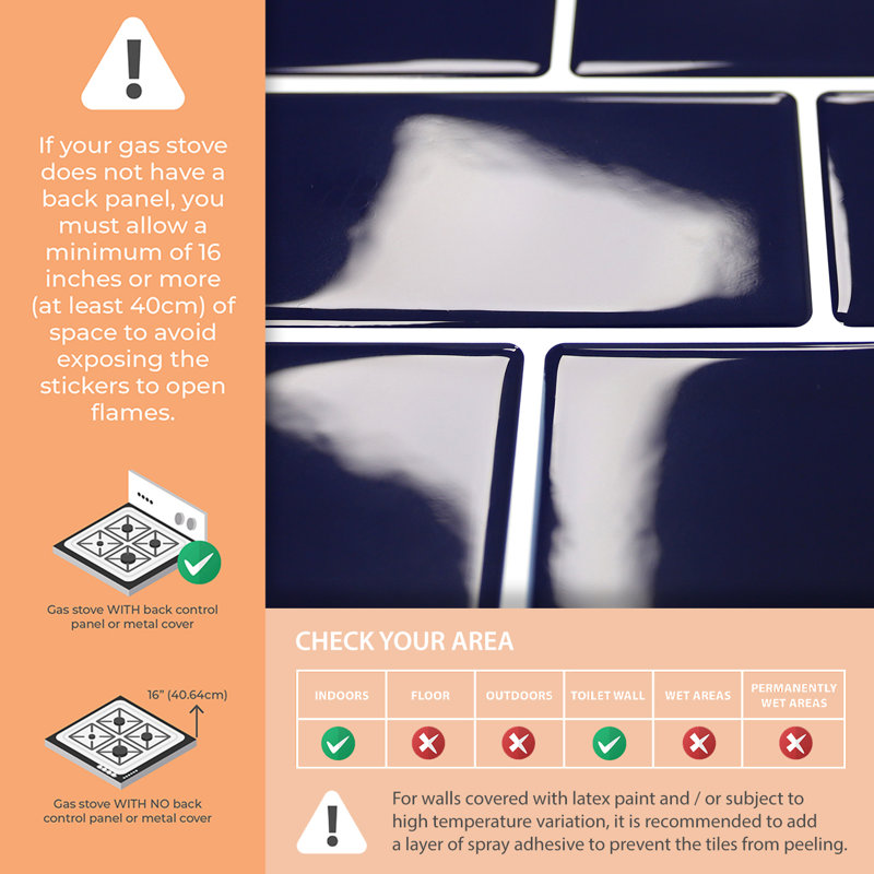 Used these in my rental on top of the existing square tile that has a poor paint job on it that makes it impossible to keep clean, picture shows the product mid-install, it was simple to put up and looks fairly convincing. Honestly would be very difficult to tell the difference until up close if it weren’t for the uneven tiles in my rental, still leaps and bounds better and my partner loves the colour it adds!
