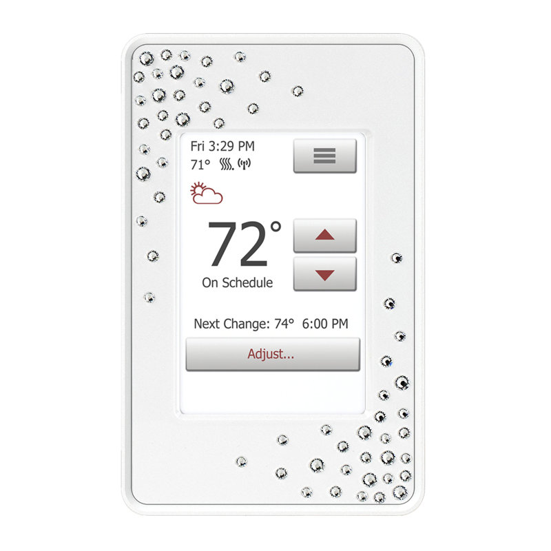 Your radiant heating thermostat should make an impact on your room’s decor with its stunning appearance. This version of our nSpire Touch WiFi comes with timeless Austrian crystals securely adhered to the thermostat’s white faceplate in two opposing corners. The design motif for this model is called “Crystal Infinity” and it features a celestial selection of different-sized crystals which, when exposed to ambient light, creates a breathtaking effect. This finish pairs particularly well with fixtures that have chrome, nickel (polished or brushed), or stainless steel (polished or brushed) hardware. But this thermostat offers more than just its looks. Due to its WiFi capabilities, this programmable thermostat, with built-in self-testing GFCI, allows you to control your floor heating system with your smartphone or on the web. If you have a busy schedule, the nSpire Touch WiFi’s ability to be controlled remotely can translate into huge energy savings without sacrificing comfort or convenience.