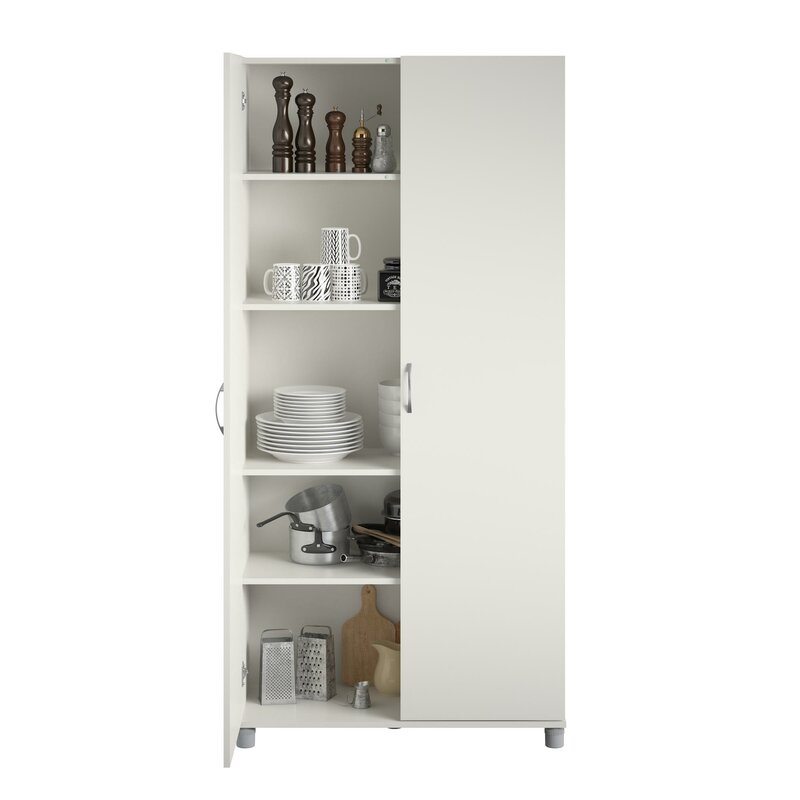 Organize your laundry room, garage, or workstation with this storage cabinet. Its sleek and understated design means you can effortlessly add this cabinet to your current arrangement. This cabinet features two doors with handles to provide your space out-of-sight storage. The doors open to reveal three adjustable interior shelves that will help you organize your tools or cleaning supplies. This storage cabinet arrives with wall anchoring hardware, so you can keep it sturdy if you have little ones running around. Assembly required.
