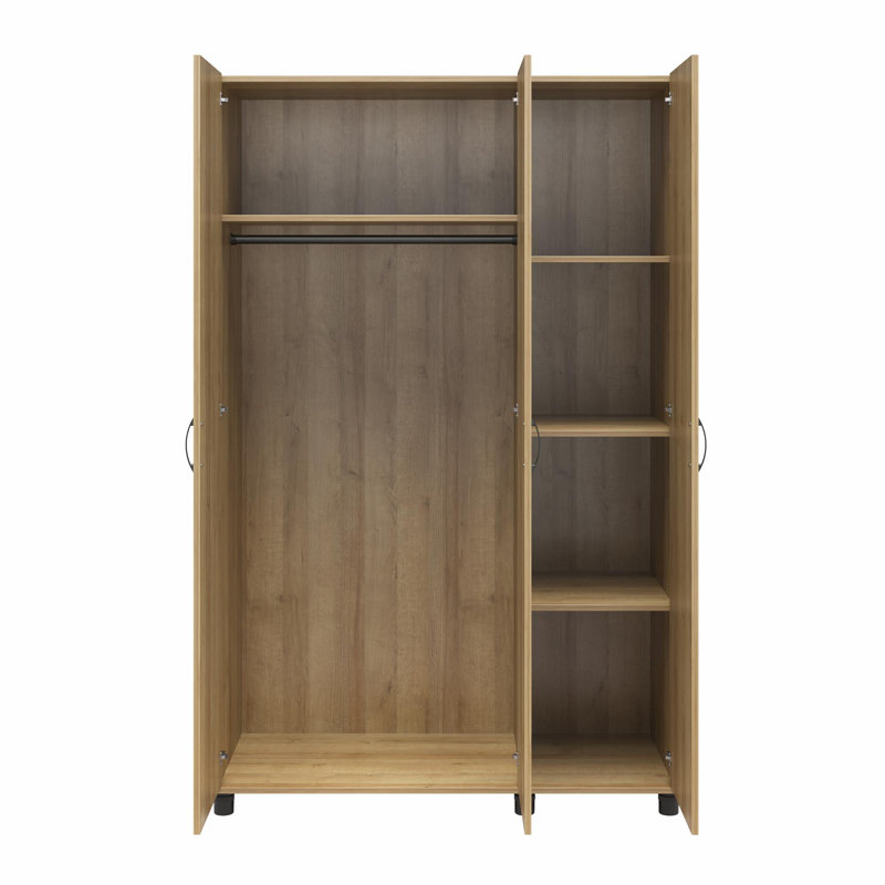 This convenient armoire converts unused space in the garage or laundry room into a functional storage spot. Its wide frame is made from engineered wood with a neutral hue, and it rests on adjustable feet that keep it level on uneven floors. Two cabinet doors open to reveal a chrome-finished bar to hang up coats and bags, while a shelf above and an open space on the bottom is ideal for shoes and boxes. We also love that the single door on the side hides adjustable shelf space for clothes and other essentials. Plus, a wall anchor kit is included to secure it to your wall for added safety.