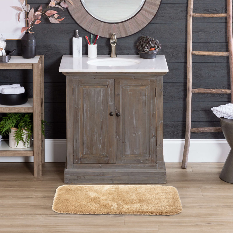 Plush Pile: The high-profile pile offers a luxuriously thick and sumptuous ultra-soft feel underfoot that brings lavish coziness to any bath space