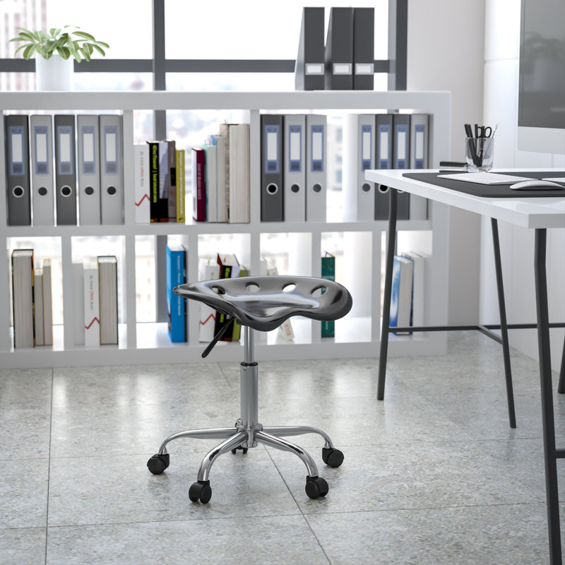 Whether you’re working in a shop or looking for an alternative desk chair, this industrial stool makes the perfect pick. Made in the USA, this piece is crafted from metal and plastic and features a high-density polymer seat in a neutral hue. Accent holes along the edge give it a sculpted look. Its convenient swivel allows you to multitask with ease, while the adjustable height feature allows you to tailor the height to your preferences. Plus, this stool sits atop five casters to roll you from one place to the next. This piece can hold up to 250 lbs.