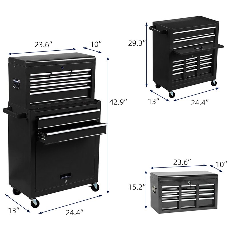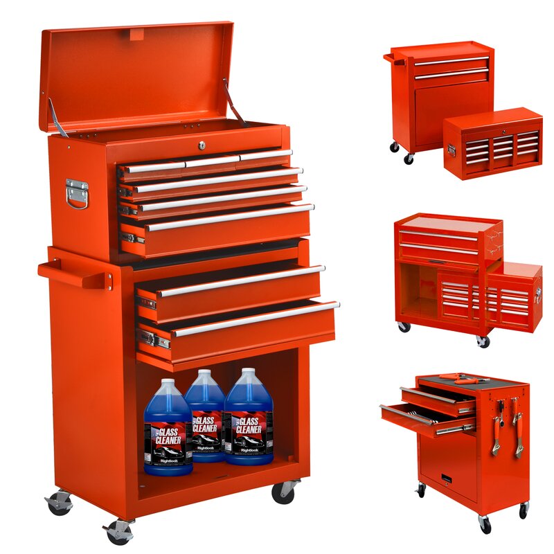 Easy to Move: With swivel casters could maneuver easily around the work area. The wheels have locking mechanisms to prevent the tool cabinet from moving around on its while in use. There is also a solid work surface on the top, so you can work right on top of it.
