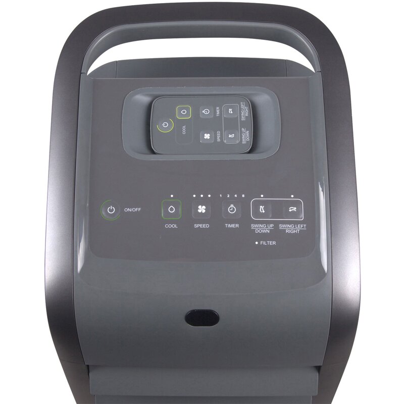 The 155 CFM Indoor Evaporative Cooler with Remote offers an effective, low-cost cooling option in areas with dry heat, such as the southwest region of the United States. The low power consumption of a mere 70 watts will save you a noteworthy amount on your energy bill in comparison to the cost of running a standard air conditioner. This unit is designed for indoor use in open environments and is equipped with cross ventilation up to 309 square feet. Control the operation of your air cooler with ease using the remote control to adjust the function to suit your comfort needs. Three fan speeds and automatic louvers evenly distribute cool air after it is sifted through the filter, providing a fresh, clean breeze throughout your room. Castor wheels and a convenient handle allow for effortless movement between rooms. For those living in more humid climates, consider Whirlpool’s portable air conditioning units or window air conditioners.