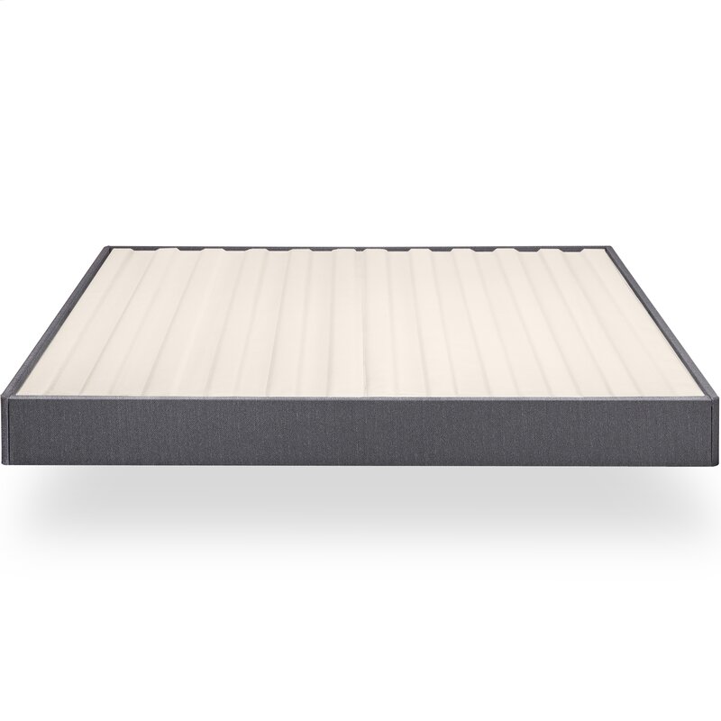 The upholstered metal and wood box spring have the best of both worlds – a look that polishes off your bed and the strength and durability of a bed foundation. Crafted to look good enough so that you can forgo the bed skirt, it’s made tough on the inside with steel and plywood framework, and clean on the outside with woven grey fabric paneling. A set of wooden slats over the top complete the finish and supportive design so you can rest easy on a latex, memory foam, or spring mattress. And our favorite part is that it ships straight to your door in one slim box and only takes five simple steps to put together. All of this, plus a 5-year worry-free warranty and a more-than-affordable price tag. We can’t think of a better partner for your mattress.