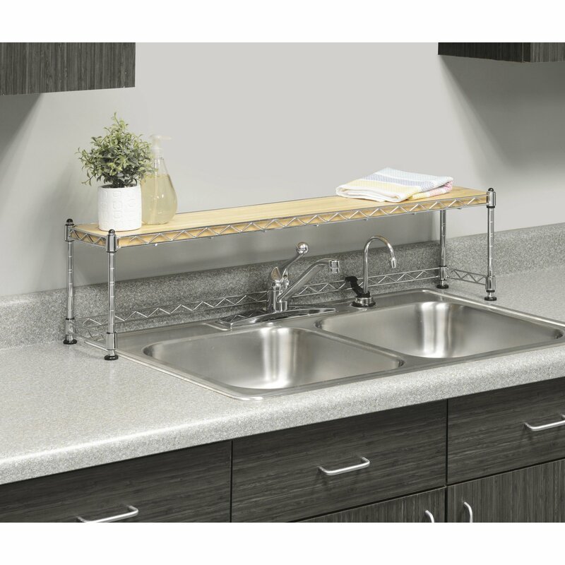 Handy shelf fits over most kitchen sinks to create extra storage space