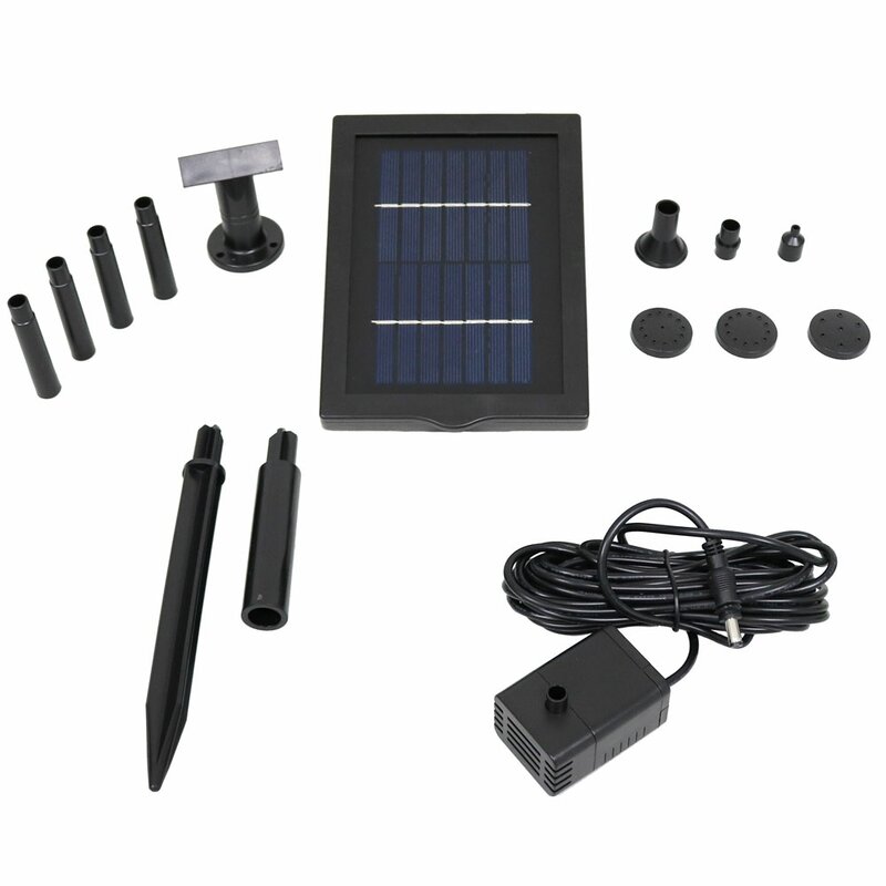 Create your own small outdoor solar fountain experience with this convenient solar pump and panel kit. Features a dry protection pump so if water runs low the pump will shut down to not burn out the pump. This will prevent a need to replace the pump. This kit comes with a 16′ cord which connects the pump to the solar panel.