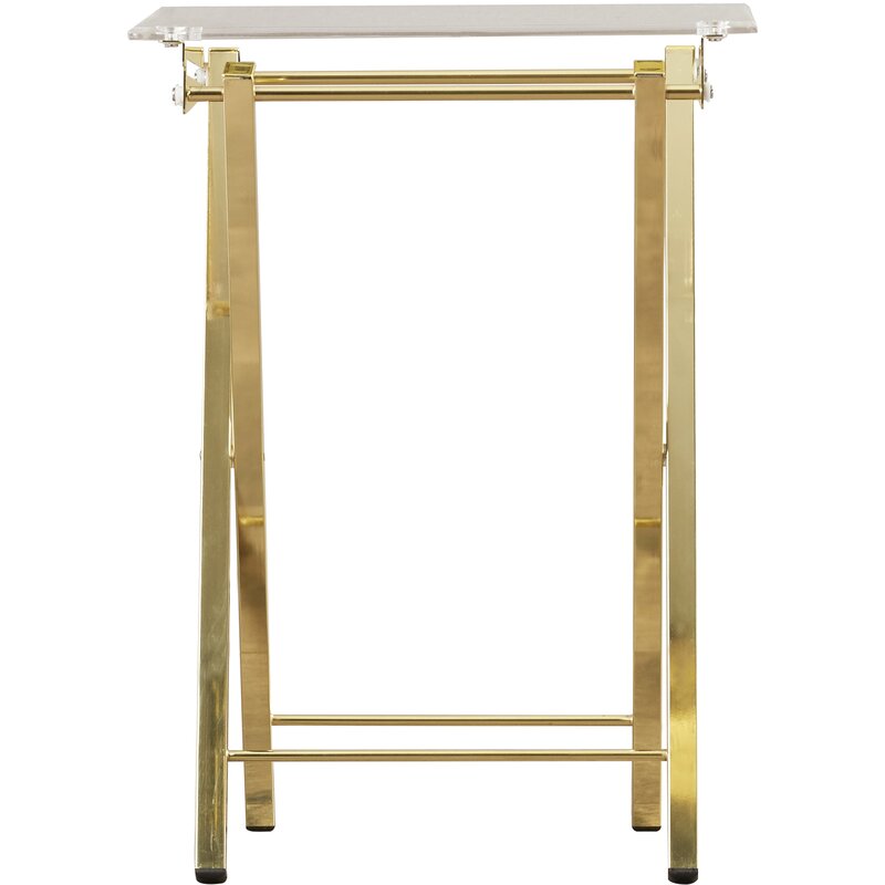 Whether enjoying dinner and a movie in the living room or simply looking to provide a place to perch accent pieces and more, this tray table set is a must-have for your home. Crafted from stainless steel, the base boasts a polished coloring for a glint of glamour, and can easily fold up for a simple storage solution when not in use. Plus, each piece is designed to resist water, so small spills are no problem! Arrives in a set of two.