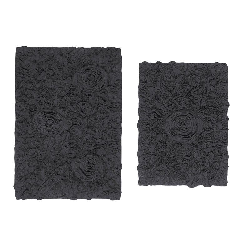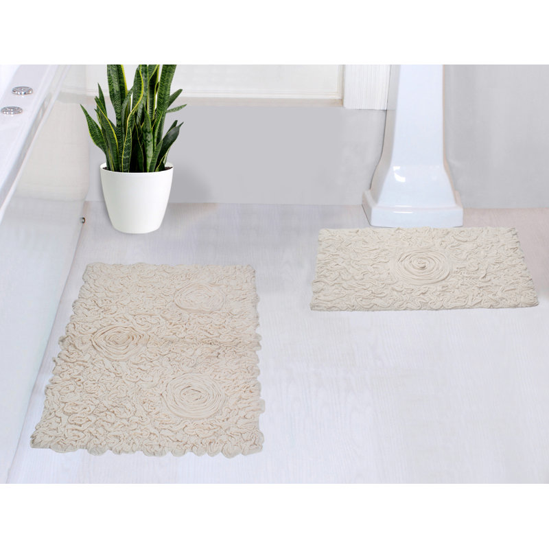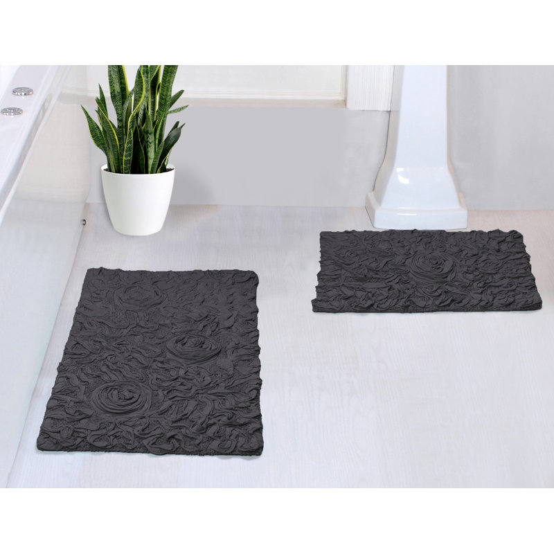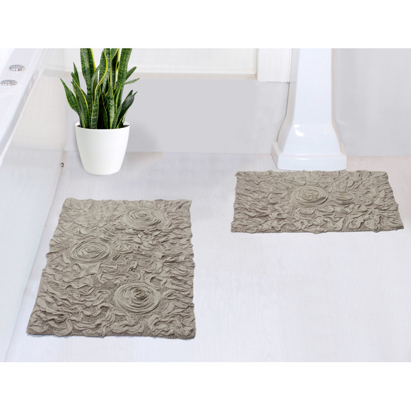 The subtle rose design on this 2-piece bath rug set brings a glam look to your bathroom floors. It features two bath rugs, both made in India from 100% cotton in a variety of hues to choose from. The large bath rug measures 21″ wide x 34″ long, and the small rug measures 17″ wide x 24″ long that fits the floor space in your main bathroom or guest room. Plus, we love that each piece in this bath rug set comes with a non-slip latex backing that eliminates the need for a rug pad.