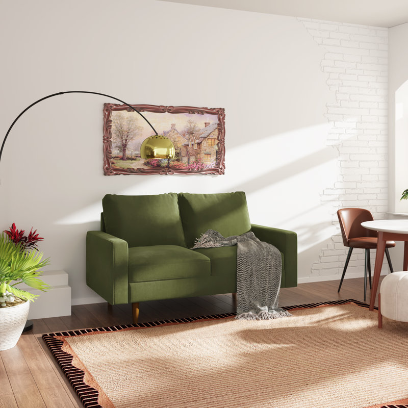 This loveseat infuses your living space with elegant, mid-century modern style. Plus, its petite scale makes it a good choice for a space conscious home or small room. It has a solid wood frame that sits on wood legs in a walnut finish, and it’s wrapped in foam and sumptuous tear-resistant velvet that feels soft and looks luxe. Sinuous springs construction helps to prevent sagging over time and is designed to add support and comfort. What’s more, the cushions are removable for easy vacuuming, and the covers come off when you want to toss them in the wash.