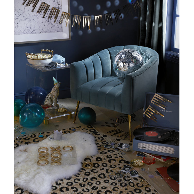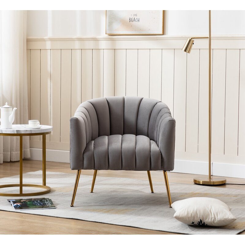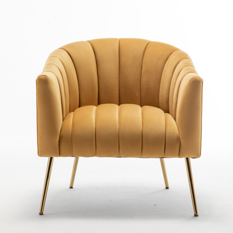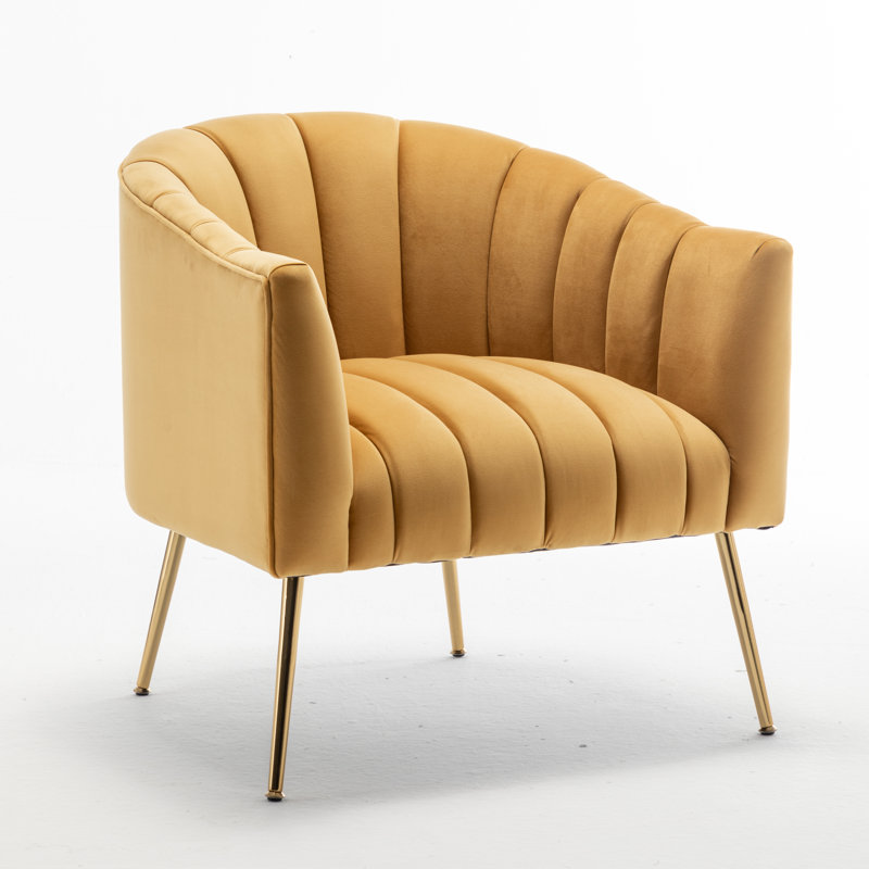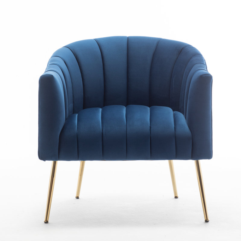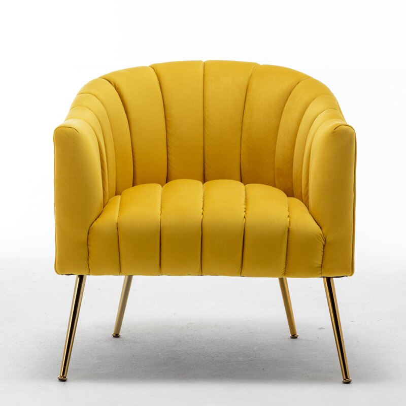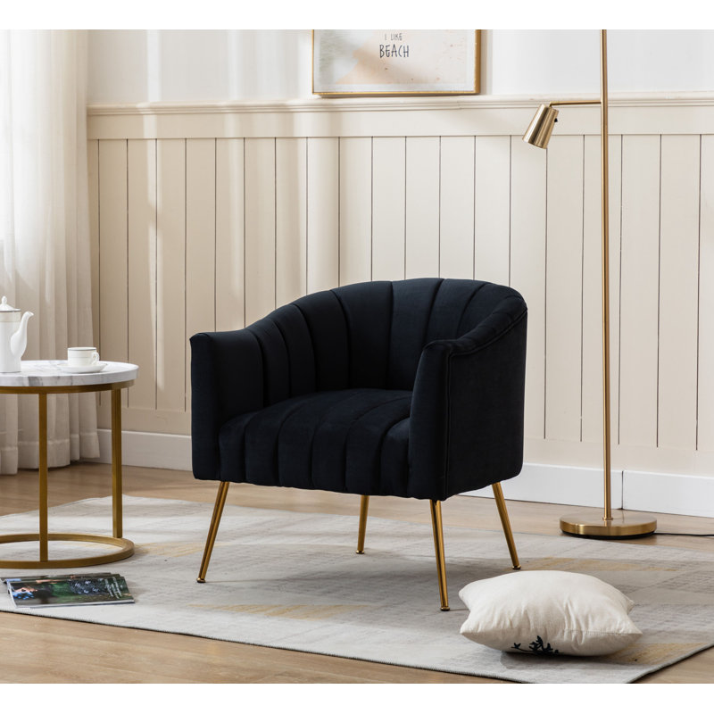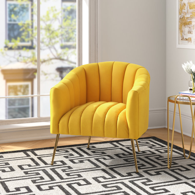 This velvet accent chair lends glam style to your living room or bedroom. It’s made with a solid and engineered wood frame that’s built upon metal conical legs in a rose gold finish. The velvet upholstery comes in your choice of color. A curved back, deep seating, and vertical channel tufting complement the luxe look. Plus, the seat and back are filled with foam and supported by sinuous springs for just the right amount of padding as you relax. This armchair is great for flanking a sofa or placing it in your reading nook.