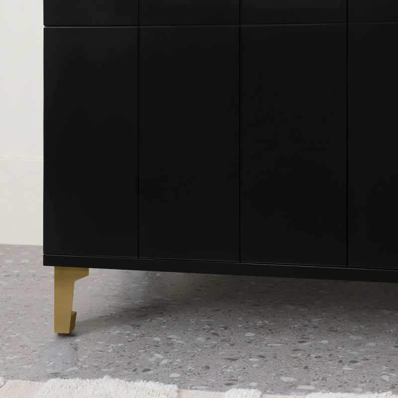 The cabinet features a unique panelled design