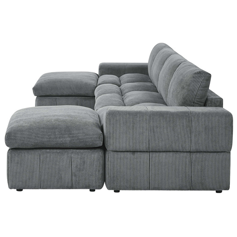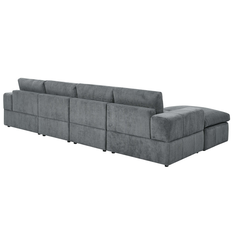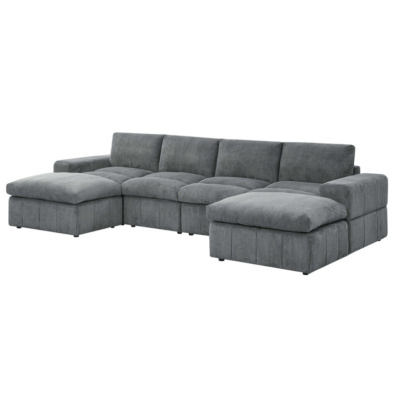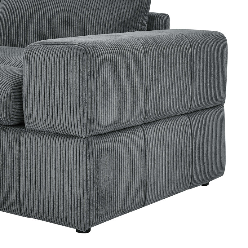 This large, modular sectional has a classic look and plush feel. It includes six pieces – two one-armed chairs, two armless chairs, and two ottomans. The chaise is reversible, making it easy to arrange it how you want in your home. It’s crafted with an engineered wood frame upholstered in corduroy with a light neutral hue. The polyester-filled cushions offer you support as you read or relax. Plus, the cushions and their covers are removable for easy cleaning.