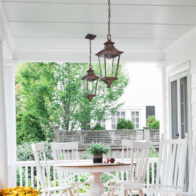 This lantern pendant light is a traditional lantern-inspired design, features tannery bronze finish die-casting aluminum with clear glass panels. An even mix of modern and vintage elements create a beautiful light at your home. This pendant light is rated for outdoor and indoor locations.