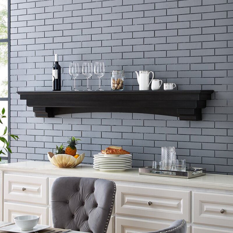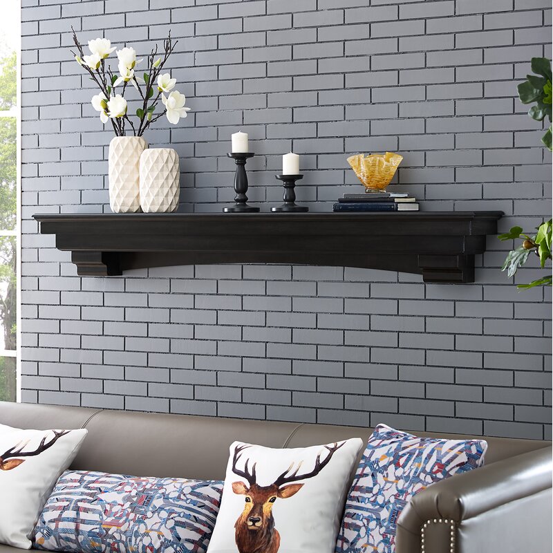 Frame your entertainment. Accent your home with the timeless architecture of this crown molding inspired floating Alconby Fireplace Mantel Shelf. Smoked ash finish emphasizes classically designed details, and wood slat wall mount keeps everything simple. Top off your display storage with this fireplace mantel shelf in your formal living room, dining room, or entryway.