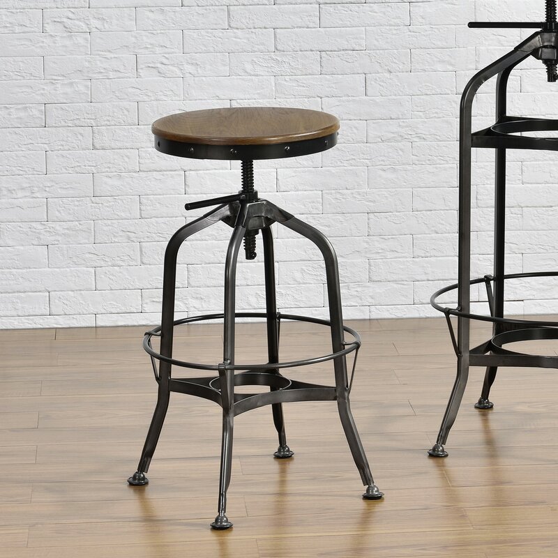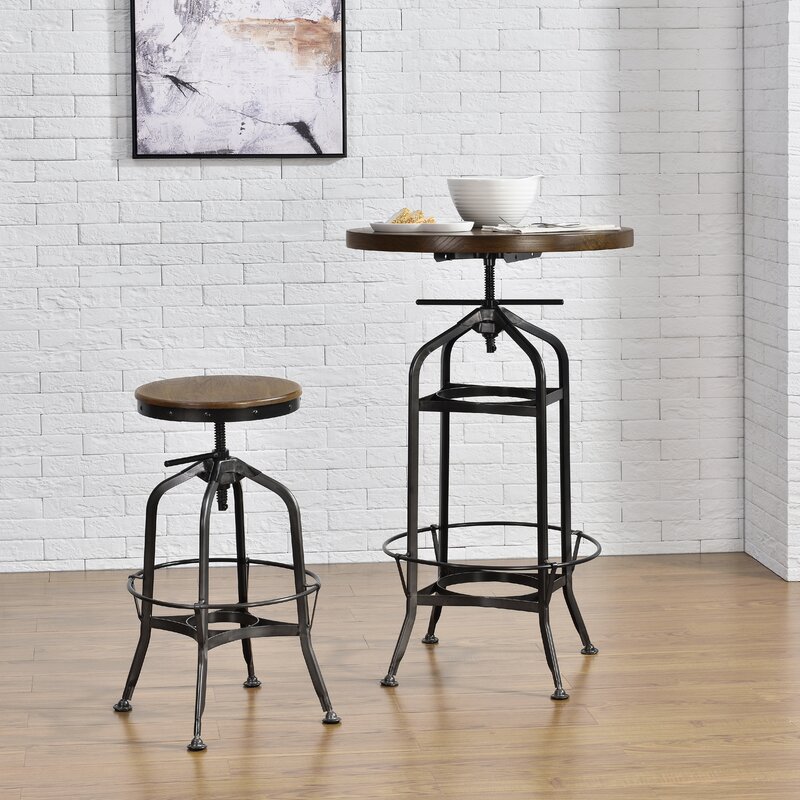 Tap into the decorating scheme of a hip brewery with this Petrie Adjustable Height Swivel Bar Stool. The seats and tabletop rest atop bases. Each piece is sold individually.