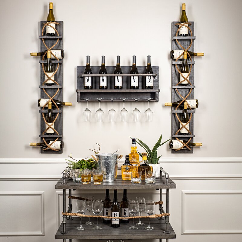 Our bar shelf will hold your wine bottle and glasses for you to keep your beverages decoratively organized.