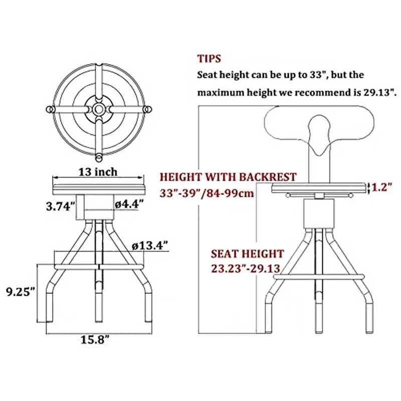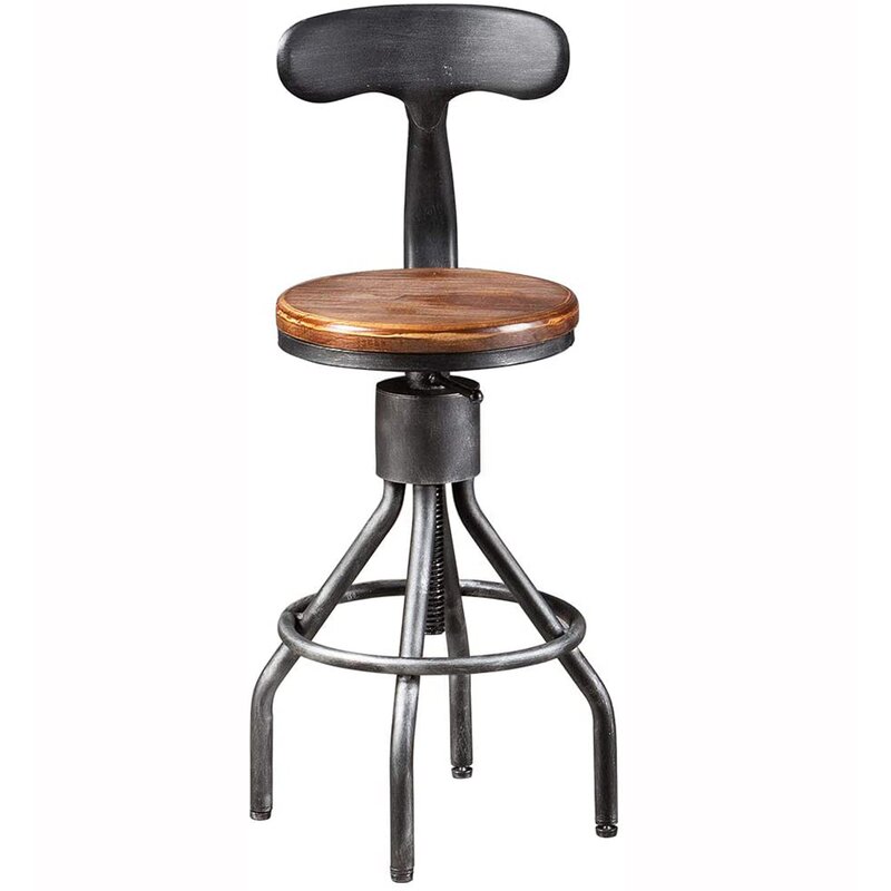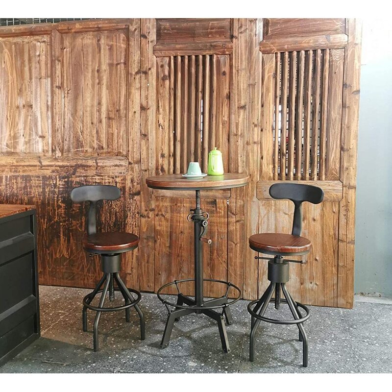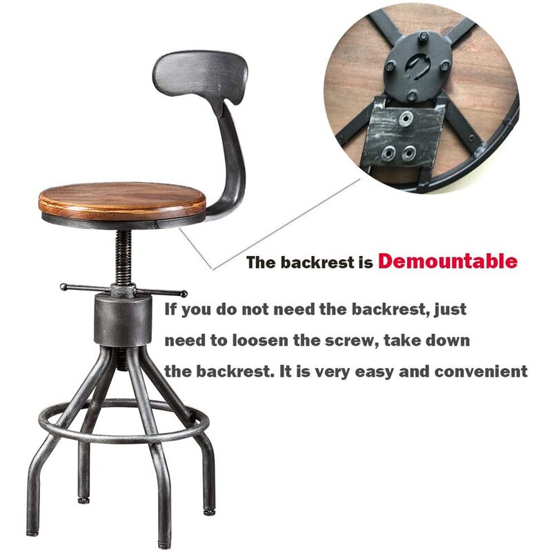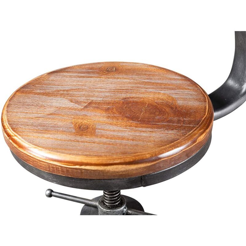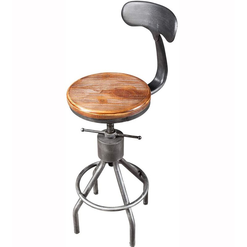 Retro industrial style stool, with clean lines that fit in with both modern and classic interiors; a brown hue seat surface, that retains the classic wood grain and adds a touch of casual sophistication to your home; a Chic shark tail back design, catching the eyes! This Bar stool exquisite industrial style, which will make your home or your store more attractive. 360-degree swivel height adjustable to make you feel comfortable and have a nice dinner or coffee. Backrest and footrest let you relax in your time. It is a nice choice for you.