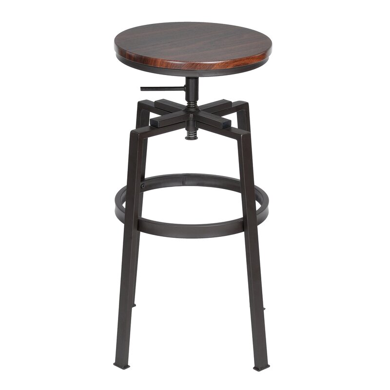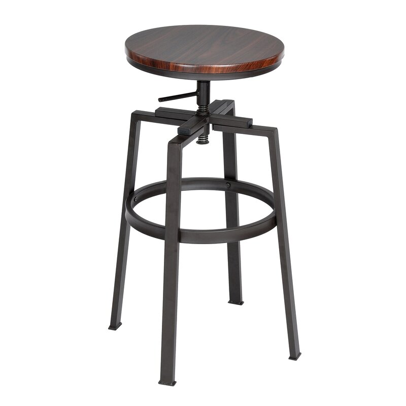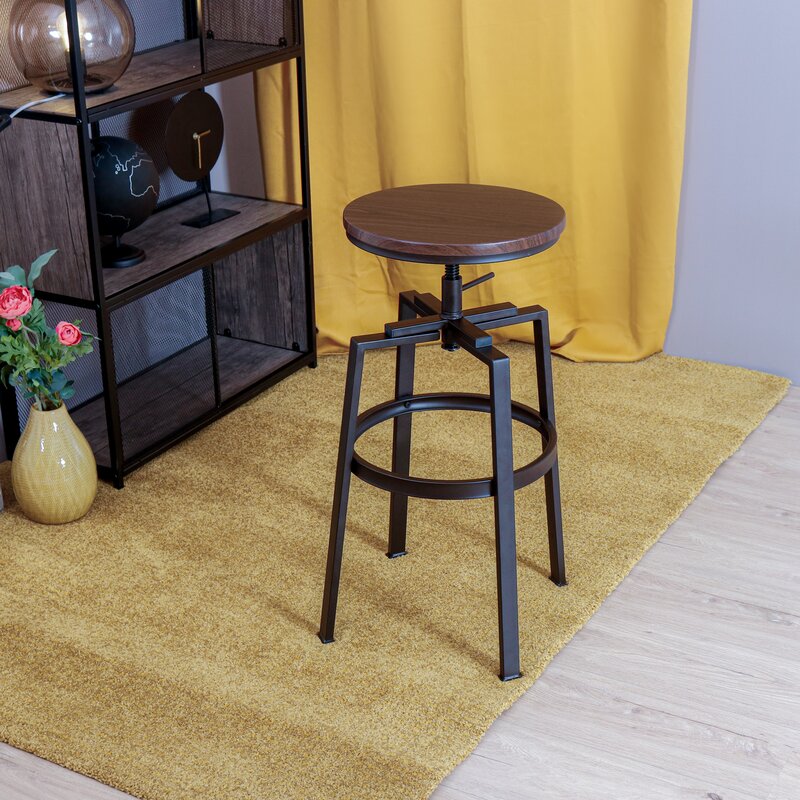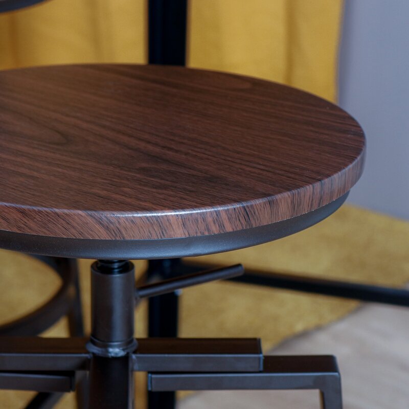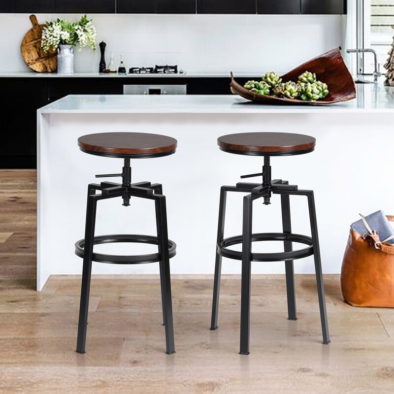 Upgrade the seating in your kitchen with this adjustable height stool with growing popularity. This stool features a backless, lightweight design that allows easy movement in your house. It’s built on an espresso finish metal with some golden shining and features four strong legs with a circular support bar, where you can rest your feet. The legs have protective floor glides that prevent damage to flooring. Adjust the seat height with the handle under the seat to match your kitchen island or bar table. Then enjoy casual family dinners with your beloved one.